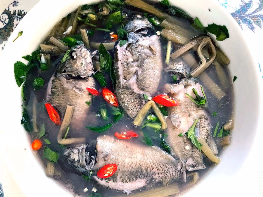 4. Canh chua cá rô đồng với bông súng và trái giác